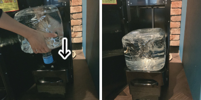 ウォーターサーバーの導入にあたって一番のネックであるボトルの交換ですが、本体の下に収納できるため9.3Lの水を持ち上げずに交換できるのはかなり助かるポイント。